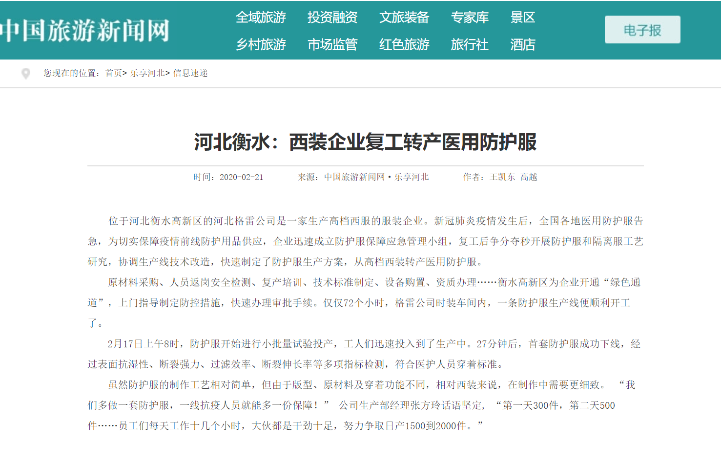 在各級政府的大力支持和幫扶下,河北格雷緊急調和各項資源,耗時近一個月,以高效的速度完成了十萬級潔凈車間建設,這不僅標志著河北格雷醫療業務煥新揚帆起航,也標志著河北格雷完成了由服裝制造業務一枝獨秀到服裝、醫療二大業務齊頭發展的新轉變!