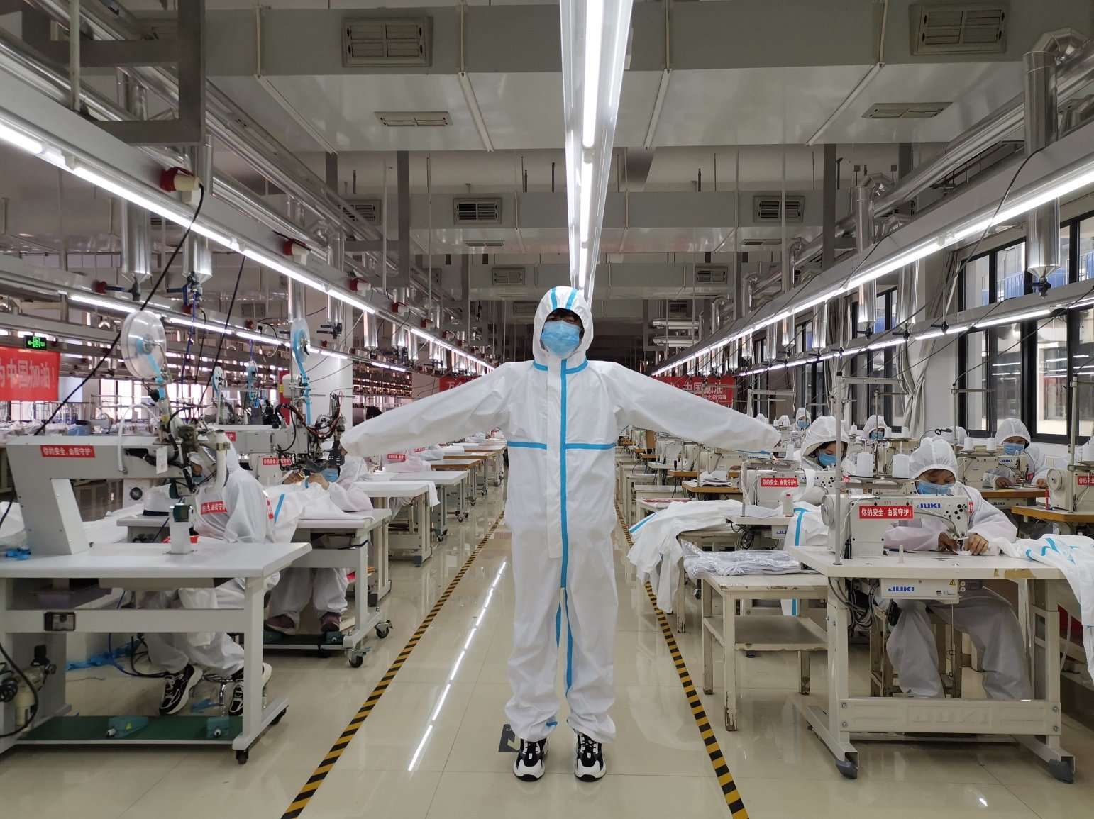 2020年7月7日,1200平10萬級潔凈車間開放投產。當天早上6:00,第一臺用于防護服生產機器進入無菌車間,經過基礎調試后,車間開始了緊張的生產,12分鐘后,第一件防護服正式下線。