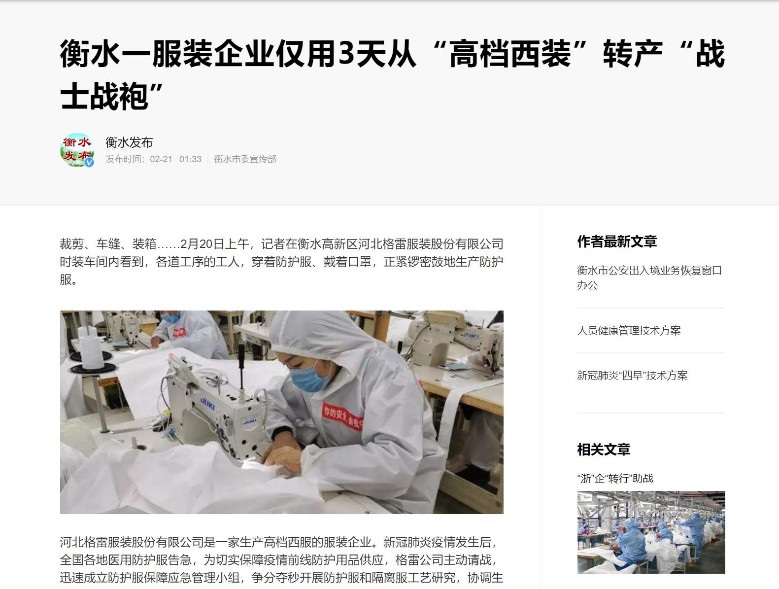 十萬級潔凈車間的建成對于河北格雷來說是具有跨越式意義的一大步,從2月初疫情爆發時期的臨危援命、快速轉產到如今的十萬級無菌車間的建成投產,從之前的隔離衣、手術衣到現在的無菌防護服,河北格雷一直在與時間賽跑,力求以最快速度承擔更多責任,不負各界信任與托付。